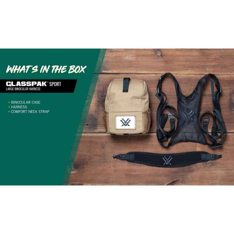 Binokulárny postroj Vortex GlassPak™ Sport Binocular Harness je potrebný pre zvýšenú ochranu Vášho ďalekohľadu. Odporúčané sú pre väčšinu binokulárov s objektívmi 42 mm a menej. VIP DOŽIVOTNÁ VORTEX ZÁRUKA: Výrobca, Vortex Optics v USA, bezplatne opraví alebo vymení Váš produkt Vortex® v prípade, že sa poškodí alebo pokazí. Ak nebude možné Váš produkt opraviť, nahradí ho produktom v bezchybnom prevádzkovom stave v rovnakom alebo lepšom fyzickom prevedení.